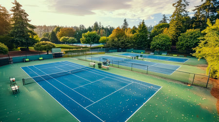 Capturing the Competitive Spirit and Green Glory of Tennis Courts from Above