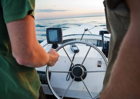 Kalvehave Denmark - May 5. 2018: Power boat sailing by full power
