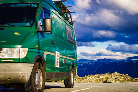 Tourism vacation and travel. Camper van on mountain road in Norway.