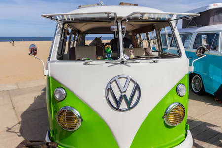 Scheveningen beach, the Netherlands - May 21, 2017: VW kombi camper wagen close up at the beach at Aircooled classic car show