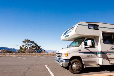 Grand Canyon National Park, Nevada, USA-December 22, 2014. Typical view of Grand Canyon on Christmas vacation.Camping at the Grand Canyon in moterhome.