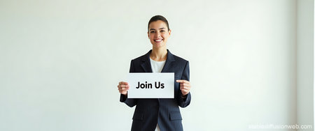 Businesswoman showing a signboard with join us, business concept.