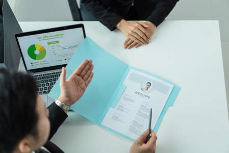 HR manager keeps resume at workplace closeup