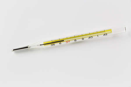 a mercury thermometer isolated on a white background. Medical measuring instrument. Virus and flu