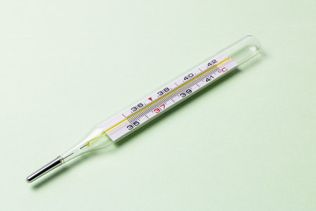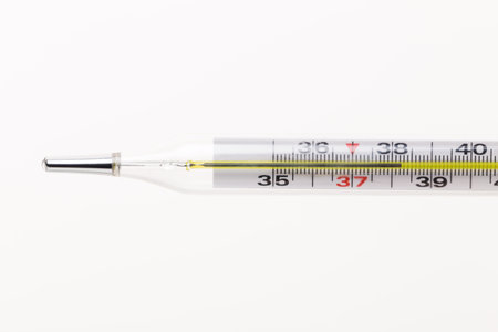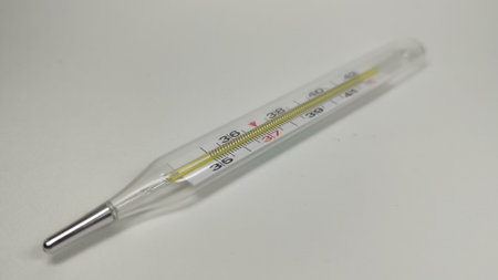 Mercury thermometer showing temperature reading at 37 degrees Celsius for health assessment