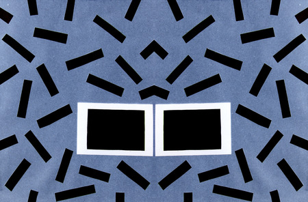 Two photo frames on geometric blue and mint background, copy space for the text, template for designer