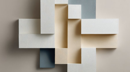 This abstract artwork features a collection of textured panels in soft neutral shades, offering a unique visual appeal and modern elegance for various design projects.