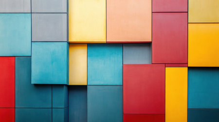 Colorful geometric wall design with bold, vibrant hues and a modern abstract pattern, ideal for artistic projects and contemporary design concepts