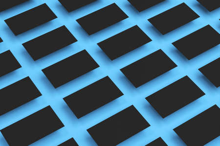 Black blank business cards mock-up on blue background. Corporate stationery template. 3D rendering illustration