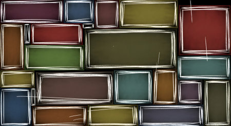 A vibrant and artistic background featuring a mosaic of colorful rectangles with a distinct hand-drawn, chalk-like outline, creating a textured and dynamic visual effect.