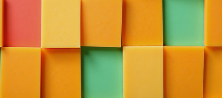 top view of colored rectangular blocks on yellow background