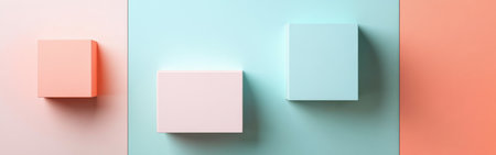 Soft pastel blocks are arranged against a smooth background, showcasing minimalist design. Light and shadow enhance the simplicity of the forms and colors.