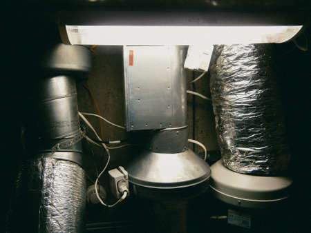 Detail of a ventilation column of a centralized air conditioning system in a gymnasium. Concept refrigeration, heat, ventilation, cooling, legionella.