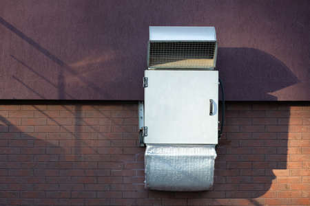 Metal industrial air conditioning vent. HVAC. Ventilation fan background.