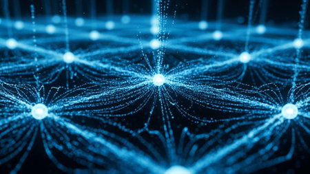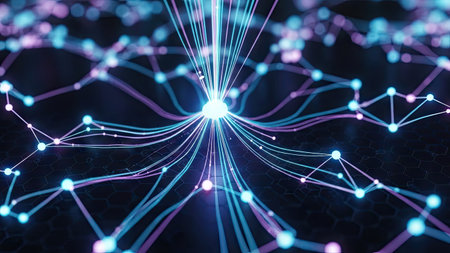 AI-inspired network background showing connections and nodes. Ideal for machine learning, big data, and innovation visuals.