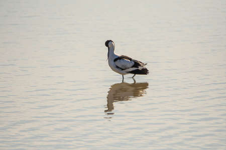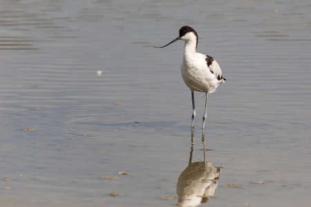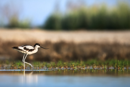 A Pied Avocet walking in shallow water, springtime in Camargue (Provence, France)