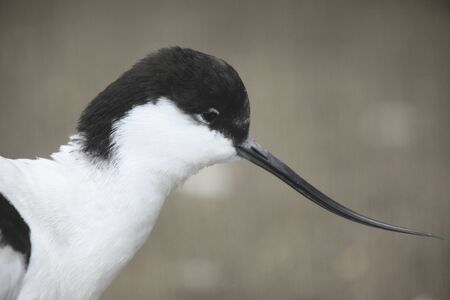A pied avocet close up (Recurvirostra avosetta) a large black and white wader in the avocet and stilt family
