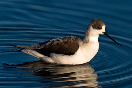 Beautiful pied avocet, Recurvirostra avosetta on the waters of the Bay of Cadiz.