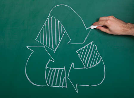 Recycle Symbol Drawn With White Chalk On A Chalkboard