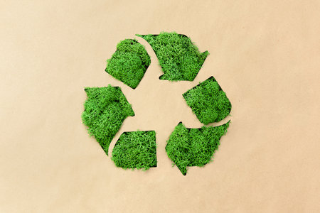 green moss recycling sign on brown background