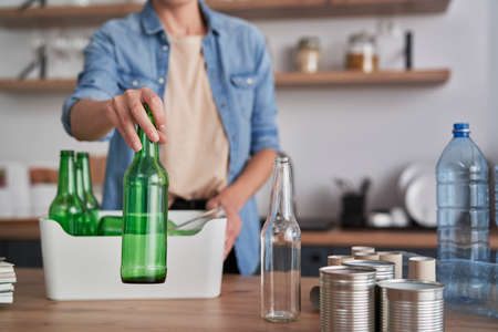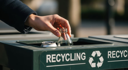 Hands meticulously sorting recyclables into designated bins - an eco-friendly effort for a greener tomorrow.