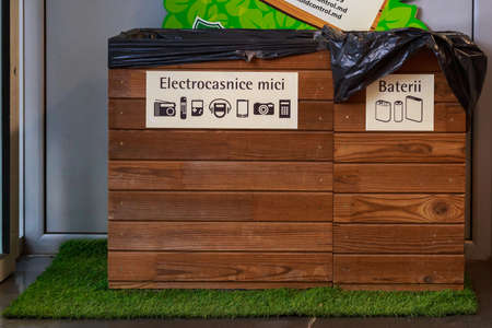 Trash can for separate collection of waste in a modern store. Environment ecology concept. Background with copy space for text. Illustrative editorial. June 8, 2021 Balti Moldova.