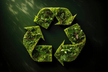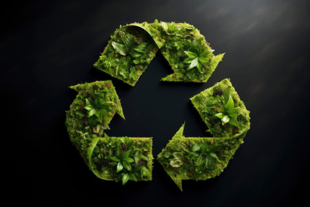 Recycling symbol consisting of green plants and leaves. Generative ai