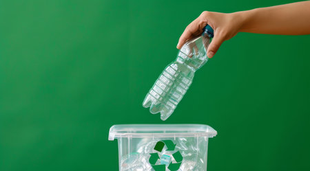 man hand putting plastic reuse for recycling concept environmental protection world recycle