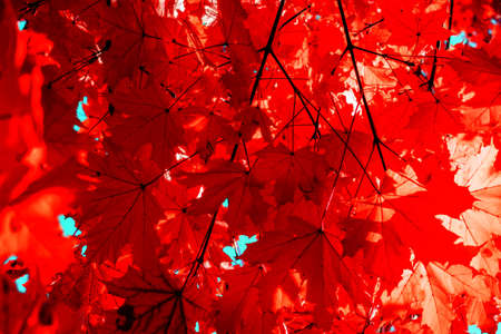 autumn colorful red leaves textured background sunny light