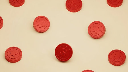 Red coins with the symbol of the Russian Federation on a beige background