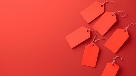 Collection of vibrant red tags on a smooth background, ideal for price labeling and promotional offers.