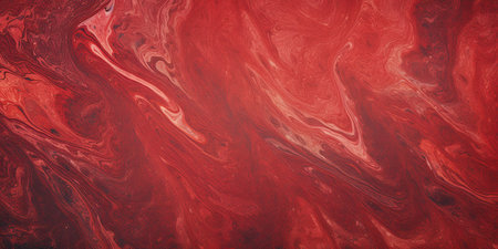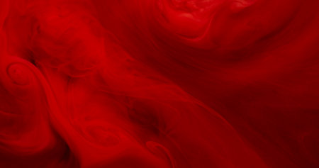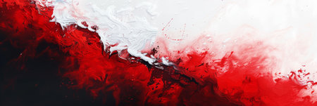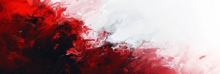 Fluid red and white paint blends seamlessly to form an abstract design, showing vibrant colors that create energy and movement, perfect for creative projects.