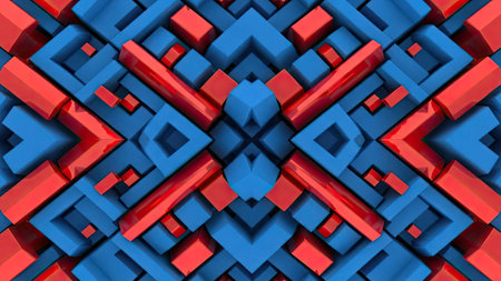 abstract geometric pattern with bold blue and red lines and shapes for modern design