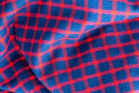A cozy flannel fabric texture background in warm red and navy plaid. The brushed, soft fibers provide a comforting, autumnal feel, perfect for cold-weather apparel, blankets, and rustic cabin decor.