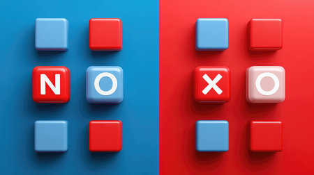 Engaging image featuring a vibrant tic tac toe game concept, showcasing colorful red and blue blocks arranged in an appealing pattern, perfect for creative projects.