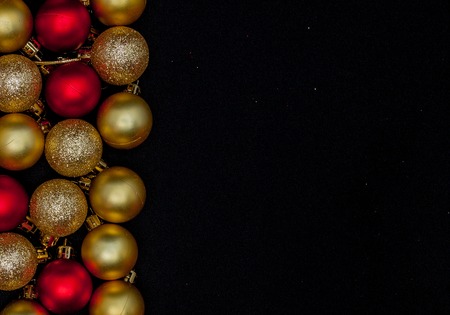New Year and Christmas background with red and gold decorations. 3D illustration.