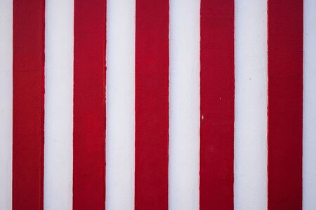 Red and white vertical stripes background pattern. An abstract colorful striped texture or backdrop with copy space.