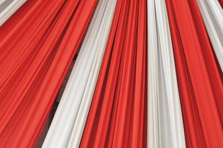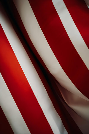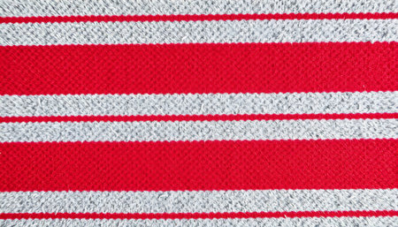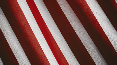 Close-up shot of a red and white striped fabric with diagonal lines, creating a textured background.