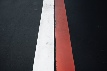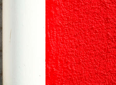 Ssurface of two-colored textured wall closeup. Abstract background consists of two stripes painted with red and white colors
