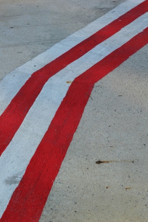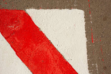 Texture. Painted on asphalt red white sign for special vehicles. Place for fire services and rescuers, emergency. No parking zone
