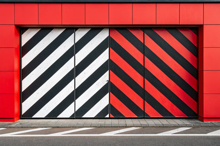 red and white diagonal stipes on flat steel sheet - caution road sign