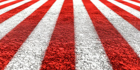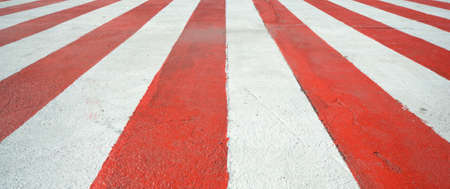 Red And White Lines Pattern On Perspective Concrete For Banners Background Or Website Header.