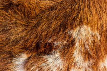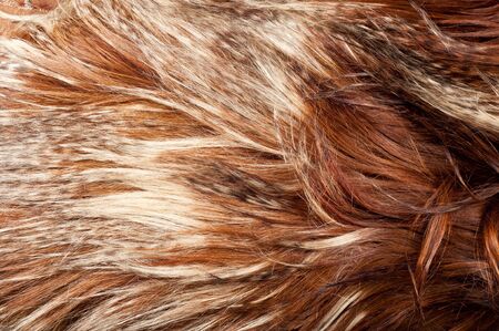 Backdrop close-up photo texture of light and red colored animal fur material.