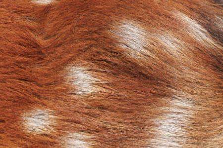 Texture of deer skin and fur, white spots on red fur. Background for design.