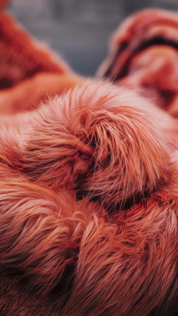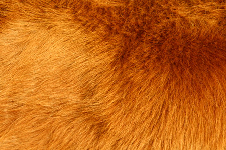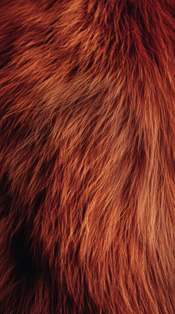 The picture captures a detailed view of lush red-brown fur, highlighting its rich texture and warm hues under soft natural light. The soft fibers exhibit a beautiful gradient.