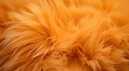 Soft bright orange fur covers the surface reflecting light in warm hues. The texture appears fluffy and inviting adding warmth to the cozy indoor space.