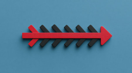 A vibrant red arrow stands tall amidst a sea of muted gray arrows, symbolizing ambition and progress. This dynamic composition inspires motivation and creativity.