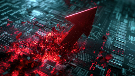 This striking image features a dynamic red arrow emerging from a digital circuit background, symbolizing growth and technological innovation in today's tech-driven world.