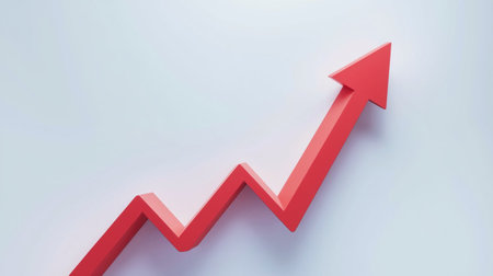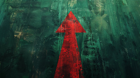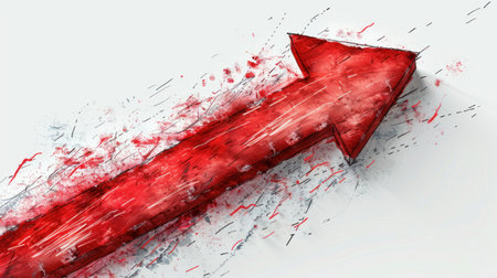 Red textured arrow pointing upwards on a white background, representing growth and upward movement. Generative AI