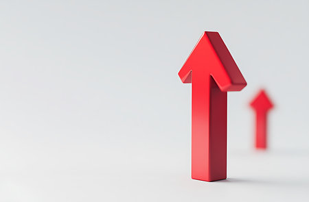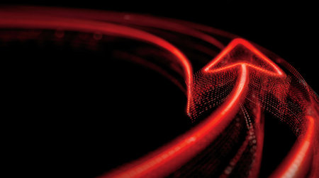 Red glowing arrows pointing upward in abstract background